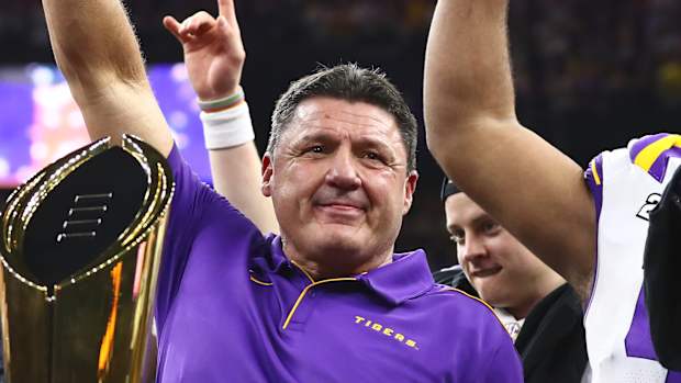 Bill Enright: The LSU Tigers won the national championship during the 2019 season. What are they going to do in 2020? Let's break it down with Glen West, who covers LSU and also Frank Taddeo, who is our gambling insider here at Sports Illustrated. Glenn, I'll start with you. When you win a national championship and half your roster ends up leaving and going to the NFL, including Heisman Trophy winner Joe Burrow, it's kind of hard to have similar success in the next season, yet what are you expecting from the Tigers in 2020?